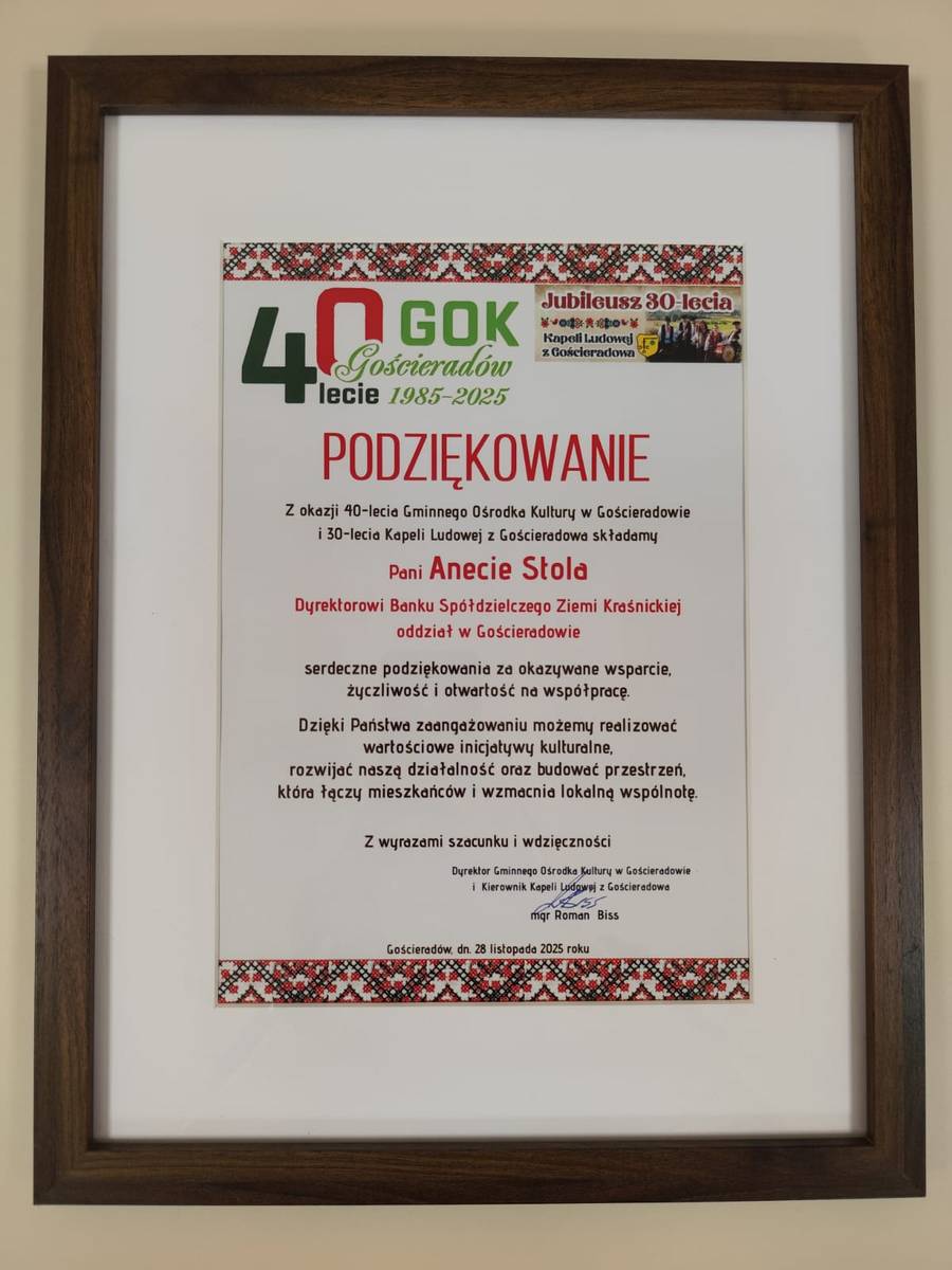 Warto dodać, że Bank Spółdzielczy Ziemi Kraśnickiej w Kraśniku był jednym ze sponsorów jubileuszu wspierając organizację uroczystości. Cieszymy się, że mogliśmy być częścią tak wspaniałego wydarzenia!